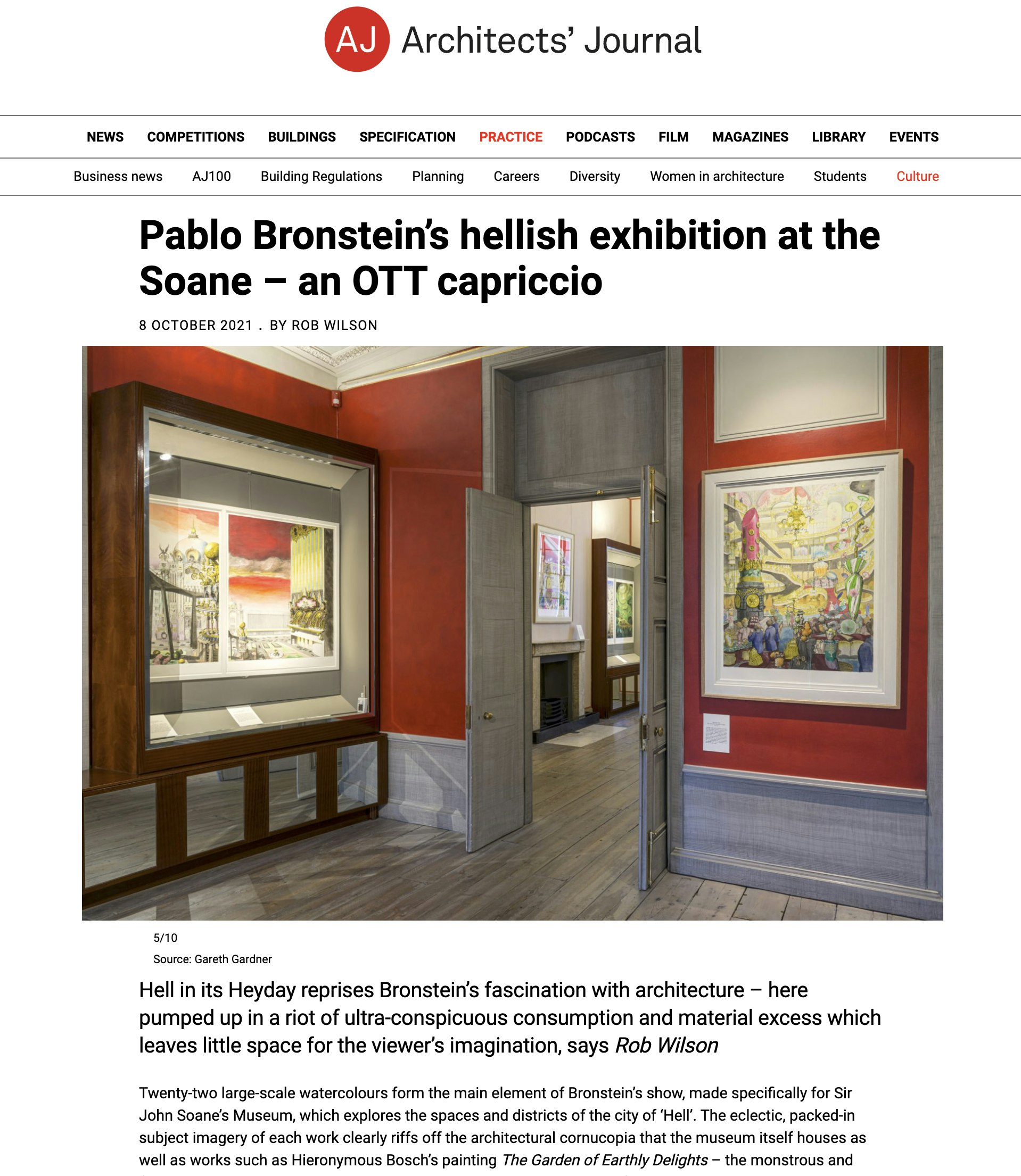 The Architects' Journal has published a review by Rob Wilson, accompanied by my photographs, of the Pablo Bronstein exhibition Hell in its Heyday. The exhibition is on at Sir John Soane's Museum until 02 January 2022.