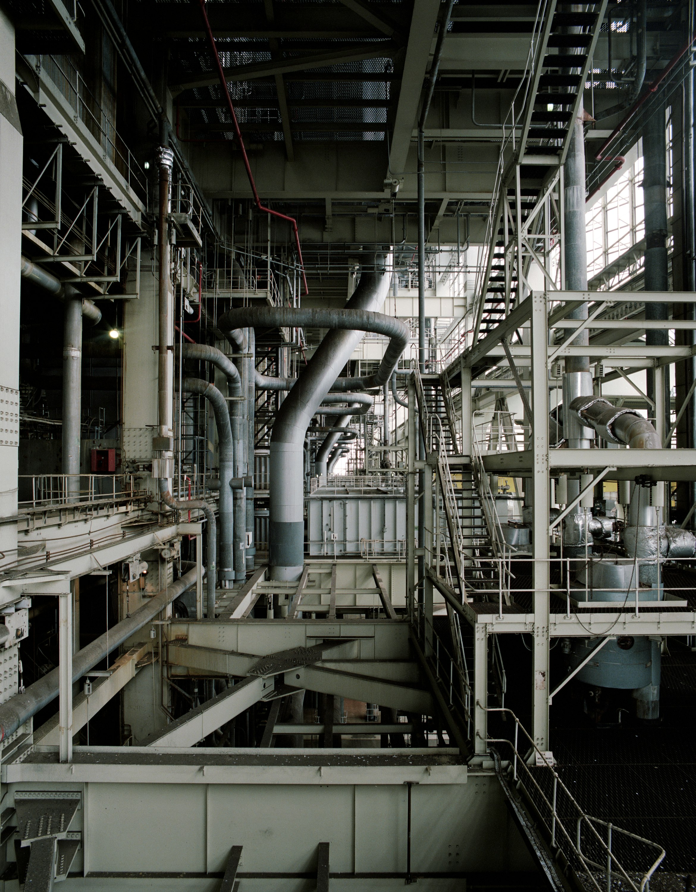 ‘When I began photographing Fawley, it was purely an exploration,’ recalls Moss. ‘But after a single visit I became fascinated by its vast interior, filled with miles of pipeline, cranes, glass cladding and turbines.’ Knowing the site was planned to be demolished, he decided to start documenting its colossal form, ageing mechanics and patina from decades of constant operation. ‘At times it felt rather eerie, wandering around the station and not seeing a soul nor hearing anyone.’