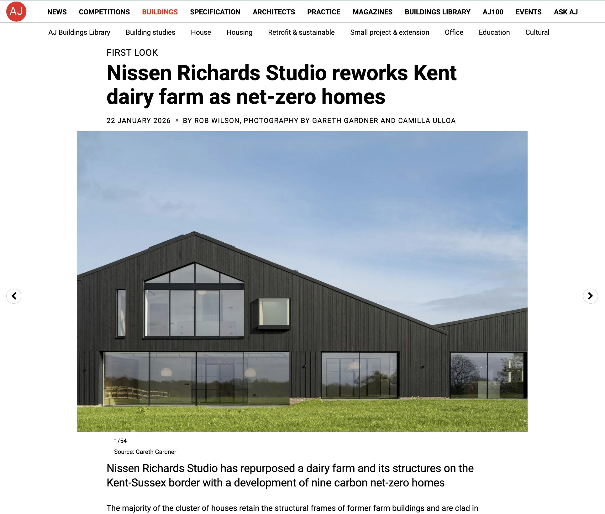 Both Grand Designs Magazine and The Architects' Journal have splashed with Hartdene Barns, a residential project designed by Nissen Richards Studio.
